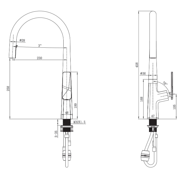 Introducing the Koarus kitchen faucet, a stylish and functional addition to any kitchen. Made from high-quality materials, this faucet is durable and built to last. With its sleek, modern design, it will enhance the look of your kitchen and give your space a high-end feel. The faucet features a single handle for ease of use, allowing you to easily control the water flow and temperature.