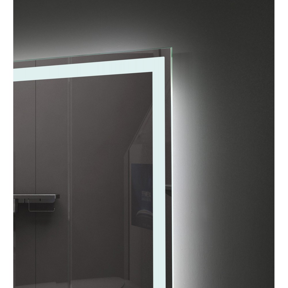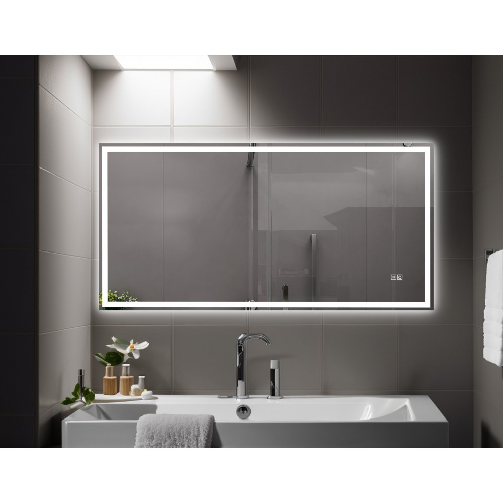 The mirror uses high-output SMD 2835 LEDs, delivering bright, uniform illumination through its 192 LEDs per meter setup. Power is managed by an ETL-certified LED driver housed in a waterproof box, ensuring durability and safe long-term operation.
