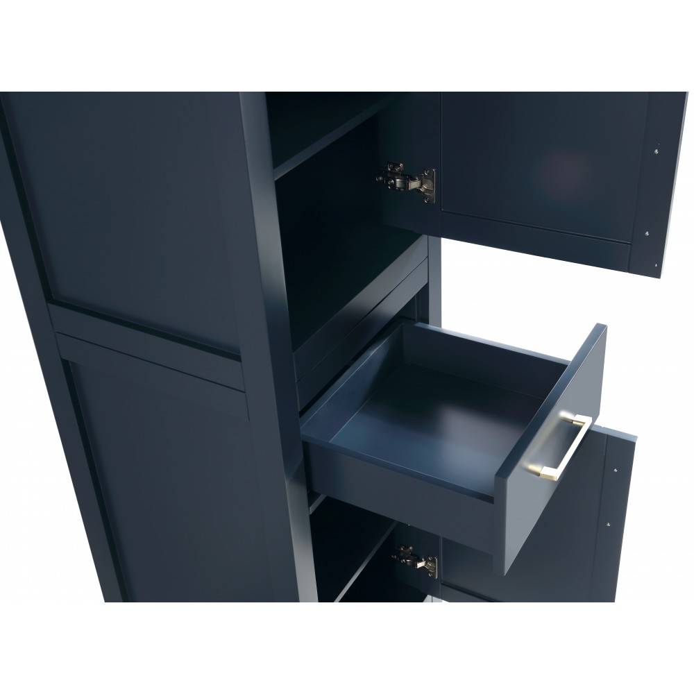 Choose the Lyon collection side cabinet for a chic storage solution without taking up the entire room. This lingerie chest, made of solid wood and equipped with sturdy and durable hardware, consists of two cabinets with shelves for optimal storage space and a drawer. Opt for the Lyon vanity to complete your set.