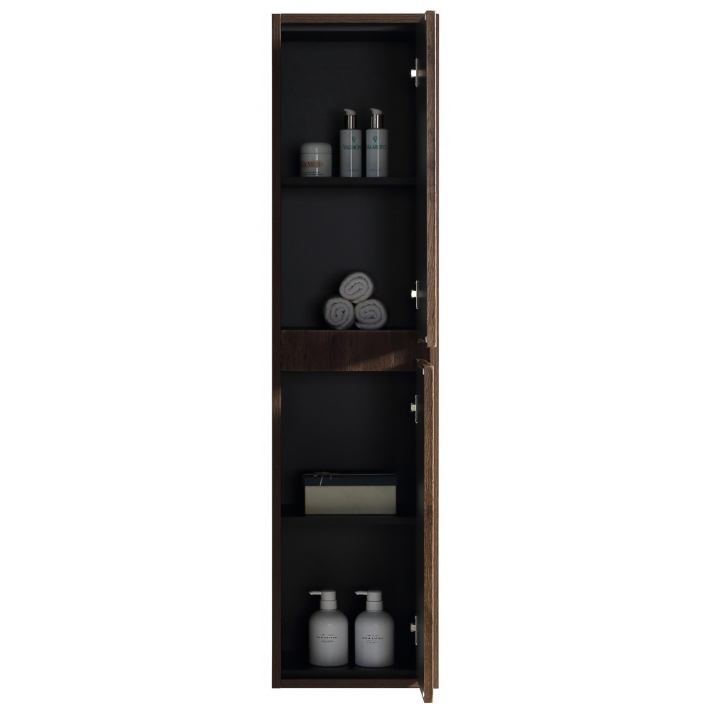 The Kavéra side cabinet blends refined craftsmanship with modern functionality. Featuring a warm Robin Oak finish and elegant vertical grooves, this tall storage unit adds height and texture to any bathroom design. Its minimalist silhouette conceals two soft-close doors that open to reveal four adjustable shelves, providing ample space for towels, beauty products, and essentials.