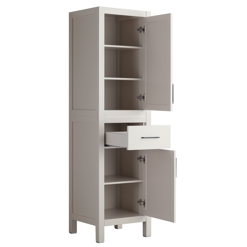 Choose the Lyon collection side cabinet for a chic storage solution without taking up the entire room. This lingerie chest, made of solid wood and equipped with sturdy and durable hardware, consists of two cabinets with shelves for optimal storage space and a drawer. Opt for the Lyon vanity to complete your set.