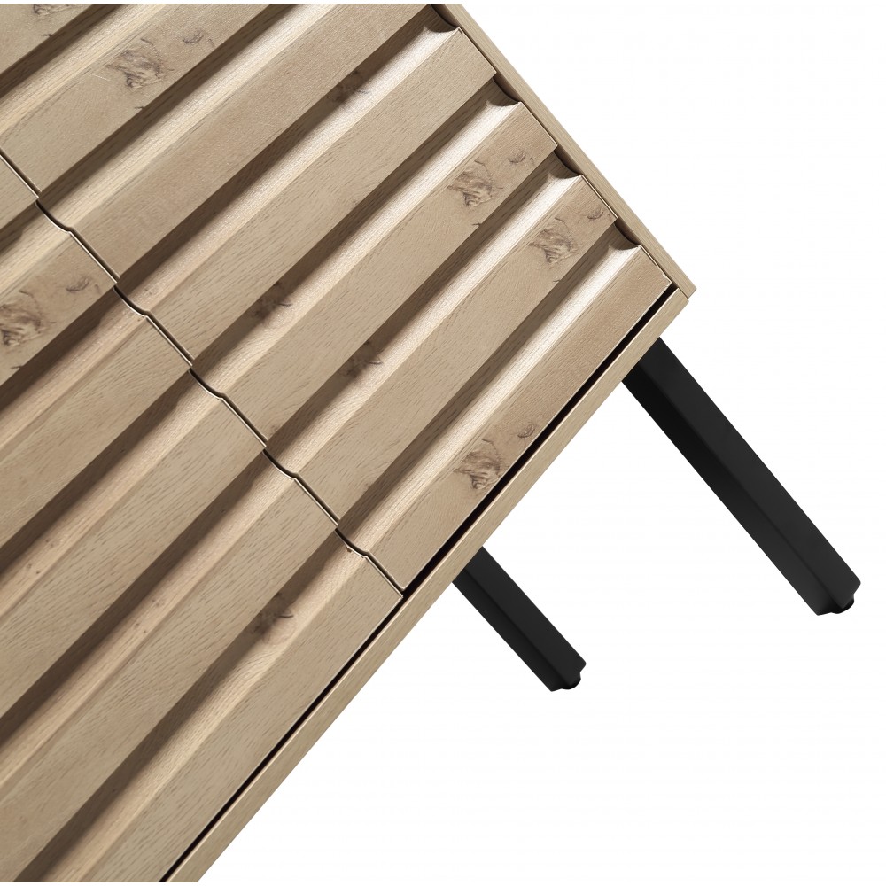 Horizontal fluted front in Zurich Oak finish for a modern, textural look.