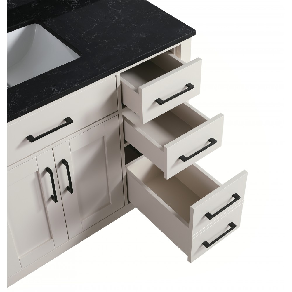 Choosing the Goli collection ensures a modern touch to your bathroom that will not go unnoticed. Select the countertop of your choice in the vanity top section. The Manila vanity is made of high-quality solid wood and is equipped with solid, durable, and superior quality hardware. It is made up of 4 drawers and 2 slow-closing doors. Opt for matching Lyon lingerie in the same color to complete your set, sold in the “Side furniture” section.