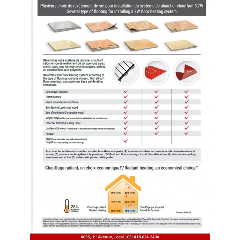 à la source de chaleur. Vérifiez auprès du manufacturier du revêtement de sol sa conformité avec le plancher chauffant choisi.