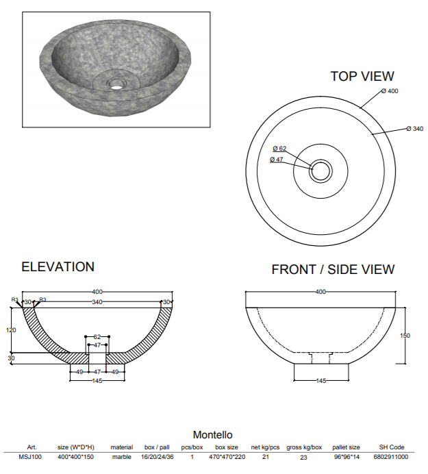 *Nous vous recommendons de traiter votre lavabo avant l'installation et ensuite 1 fois par an, avec un scellant à pierre. Ce produit est disponible dans notre boutique en ligne.