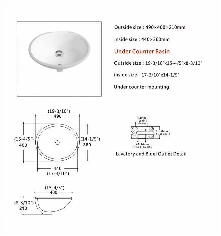 Lavabo en porcelaine sous plan avec trop plein