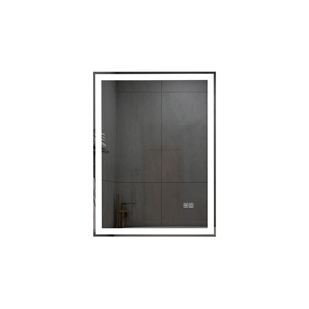 Le miroir utilise des LED SMD 2835 à haut rendement, offrant un éclairage lumineux et uniforme grâce à sa configuration de 192 LED par mètre. L'alimentation est gérée par un driver LED certifié ETL, logé dans un boîtier étanche, garantissant durabilité et fonctionnement sûr à long terme.