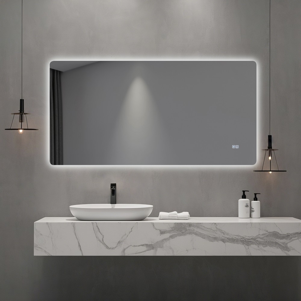 - Élégant et moderne : ce miroir mettra à jour l'allure de n'importe quelle pièce avec ses coins incurvés, ses boutons sur le miroir et son rétroéclairage avec des lumières LED.
