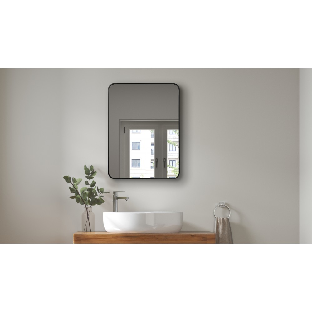 Ce miroir est doté d'une vitre de 1,5 mm sans cuivre, garantissant une clarté supérieure et une résistance accrue à l'humidité, à l'oxydation et à la corrosion à long terme – idéal pour les environnements humides comme les salles de bain. Son cadre en aluminium noir de 2,28 mm apporte une touche raffinée et contemporaine, tout en préservant la légèreté et la facilité d'installation du miroir.