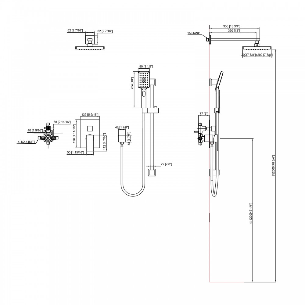 5. Filetage : NPT 1/2 pour bras de douche et pulvérisateur à main