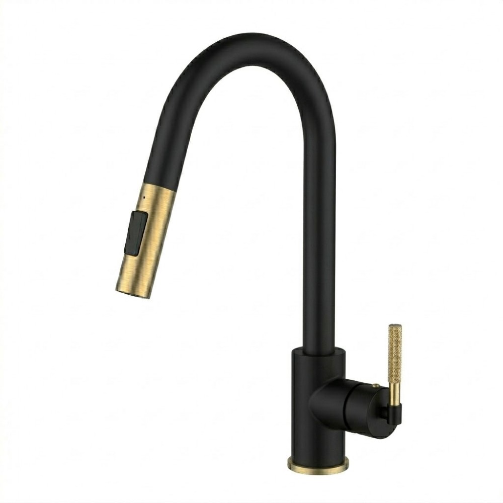 Voici le robinet de cuisine Kidali II, un ajout élégant et fonctionnel à toute cuisine. Fabriqué à partir de matériaux de haute qualité, ce robinet est durable et conçu pour durer. Avec son design élégant et moderne, il rehaussera l'apparence de votre cuisine et donnera une sensation haut de gamme à votre espace. Le robinet est doté d'un bec pivotant et d'une poignée unique pour une utilisation facile, vous permettant de contrôler facilement le débit et la température de l'eau. Il comprend également une tête de pulvérisation extractible, qui offre une flexibilité et une commodité supplémentaires pour laver la vaisselle ou rincer les fruits et légumes.