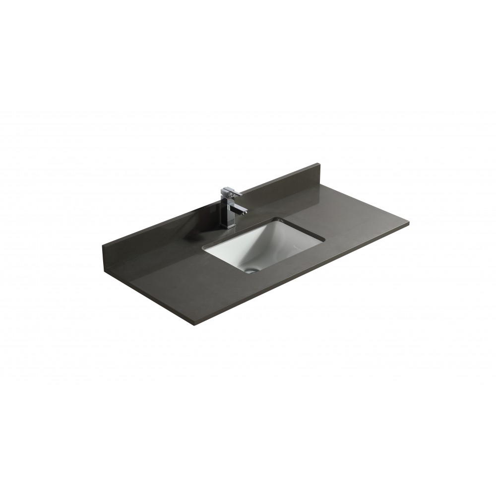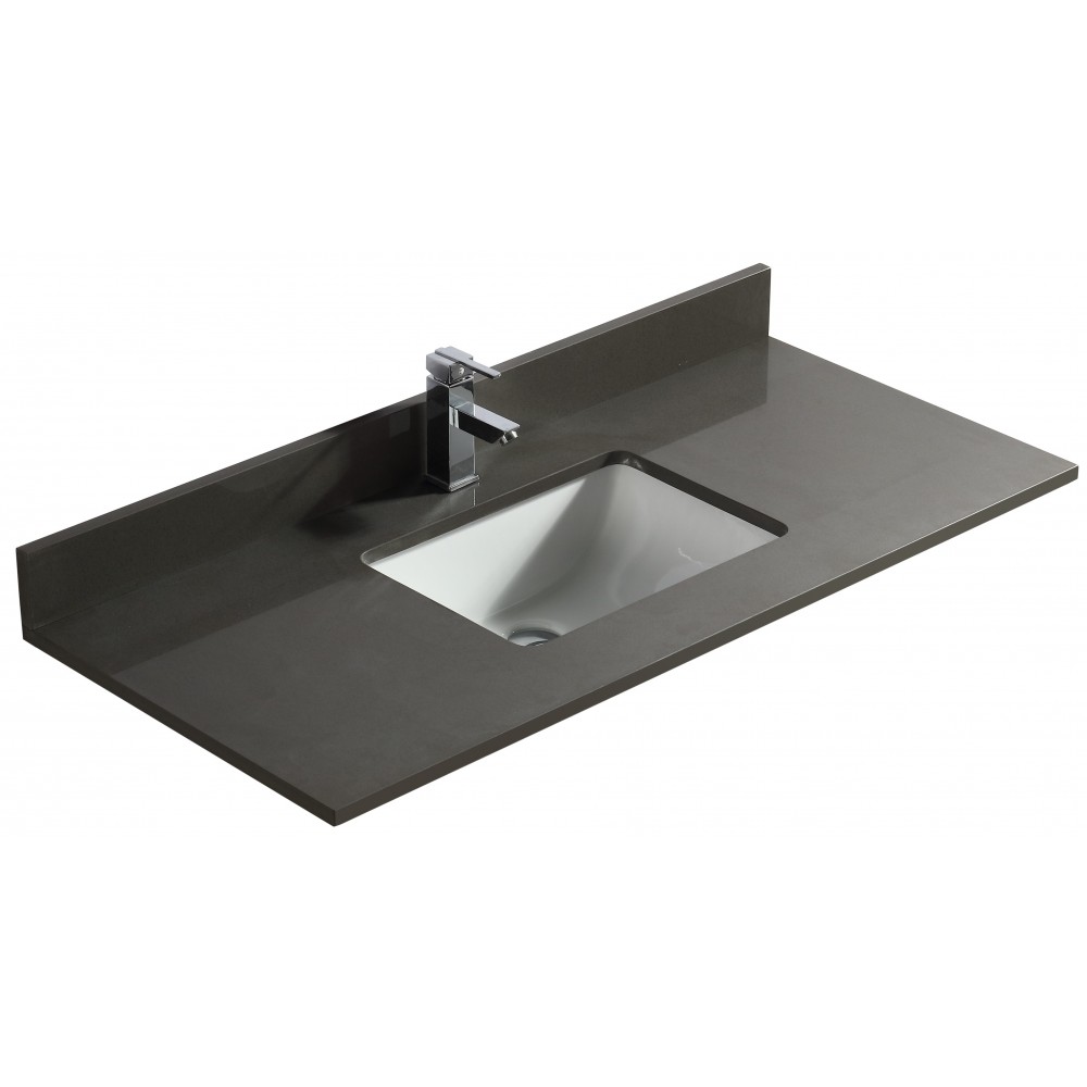 Dessus de vanité en quartz gris pure 48 pouces avec lavabo sous-plan en porcelaine