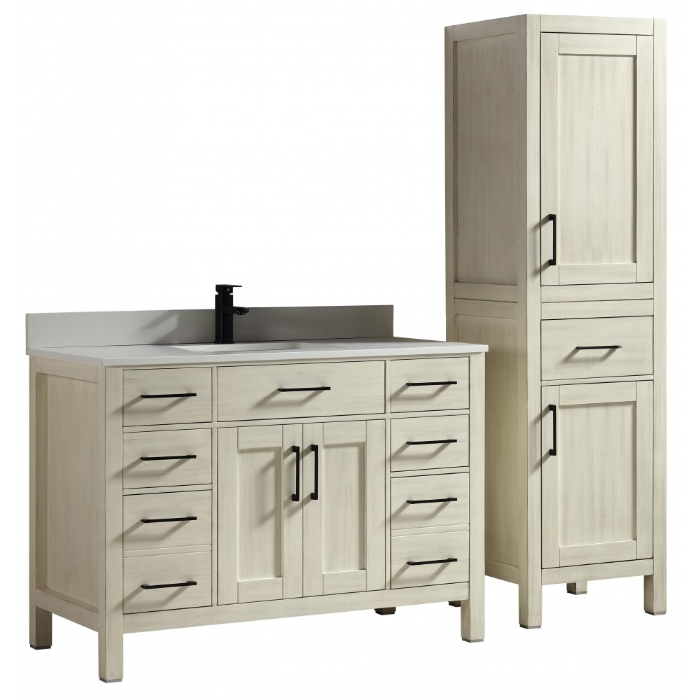 Vanité de salle de bain Goli 48'' – bois massif beige antique