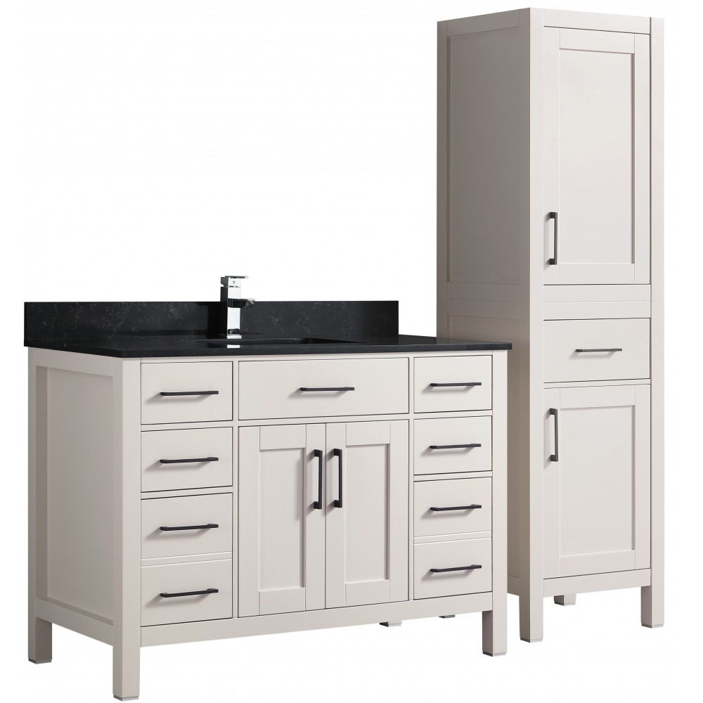 Choisir la collection Goli assure une touche Classique à votre salle de bain et une ambiance empreinte de richesse. Sélectionner le dessus de comptoir de votre choix dans la section dessus de vanité pour l'agencer à votre décor. Le meuble lavabos Manille est fabriqué en bois massif de haute qualité et est muni d'une quincaillerie solide, durable et d'une qualité supérieure. Elle est composée de 4 tiroirs et 2 portes à fermeture lente. Optez pour la lingerie Lyon assortie de la même couleur pour compléter votre ensemble, vendue dans la section meuble de côté