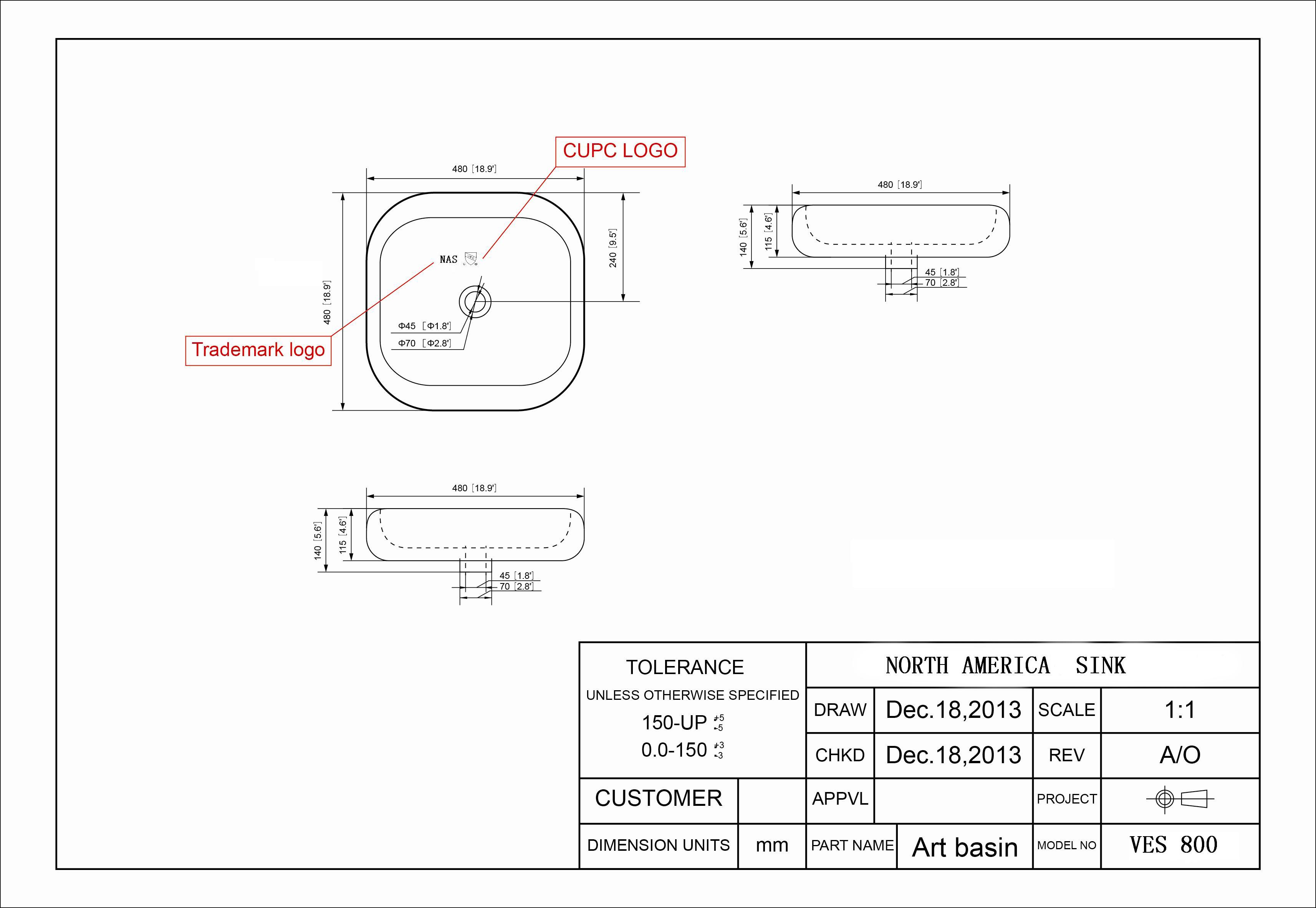 Dimensions extérieures (en pouces) : 18.9 × 18.9 × 4.6"